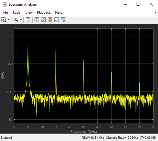 CenterFrequency - Центр частотного диапазона0 (по умолчанию) | вещественный скалярУкажите в герцах центральную частоту диапазона, по которому анализатор спектра вычисляет и строит график спектра. Общий диапазон частот, определенный свойством Span и этим свойством, должен находиться в пределах интервала частот Найквиста.