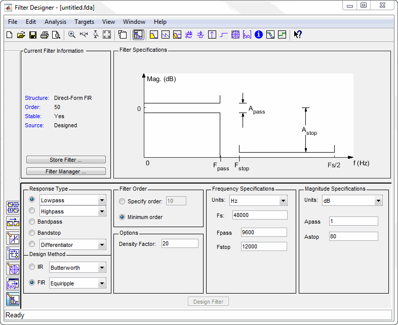 filterDesigner открывает приложение Конструктор фильтров. Используйте этот инструмент для: