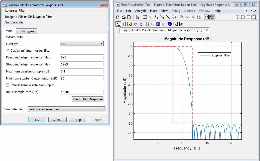 Этот блок предоставляет возможности dsp.LowpassFilter object™ системы в среду Simulink.