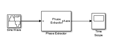 В этом примере показано, как использовать блок извлечения фазы для извлечения фазы знаковой волны. Блок синусоидального сигнала DSP представляет системный входной сигнал. Установите следующие параметры блока синусоидального сигнала DSP:
