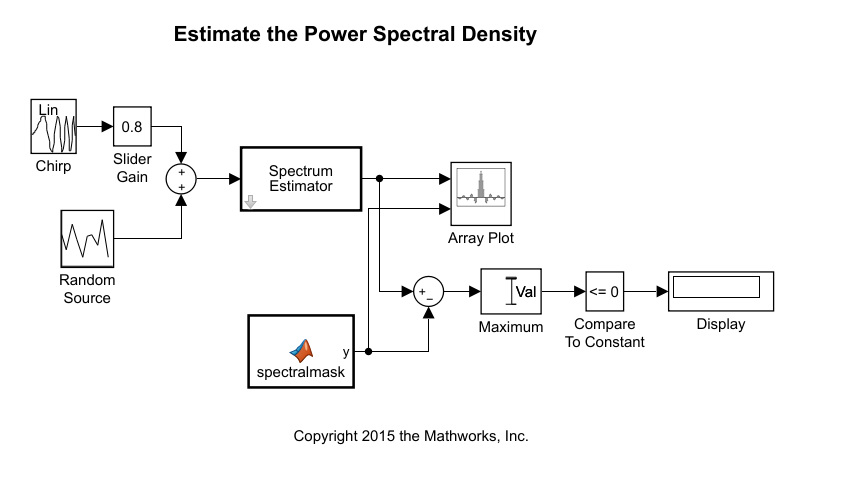 Для просмотра всей модели введите ex_psd_spectralmask в командной строке MATLAB.