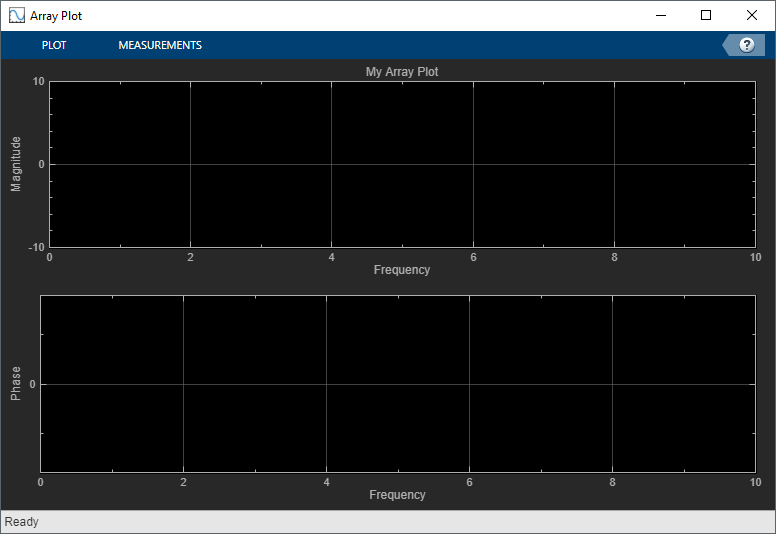 % Creation Code for 'dsp.ArrayPlot'. % Generated by Array Plot on 20-Sep-2019 14:27:45 -0400. arrayPlot = dsp.ArrayPlot('Title','My Array Plot', ... 'XLabel','Frequency', ... 'PlotAsMagnitudePhase',true, ... 'ShowLegend',true, ... 'Position',[2075 330 774 502]);