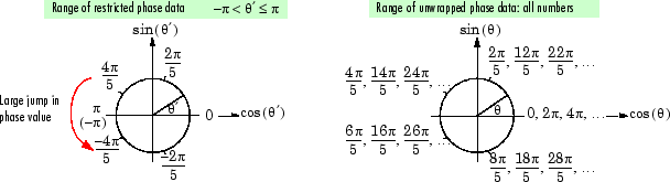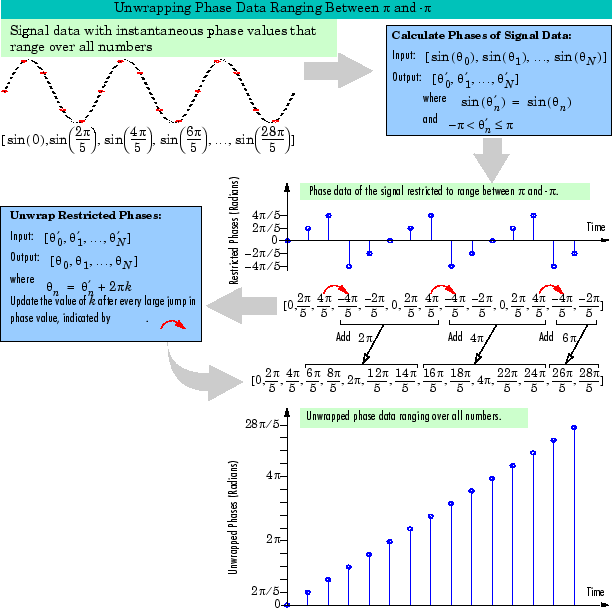 Алгоритмы, которые вычисляют фазу сигнала, часто только выходные фазы между -δ и δ. Например, такие алгоритмы вычисляют фазу sin (2δ + 3) равной 3, так как sin (3) = sin (2λ + 3), а так как фактическая фаза, 2λ + 3, не находится между -λ и δ. Такие алгоритмы вычисляют фазы sin (-4δ + 3) и sin (16λ + 3) также как 3.