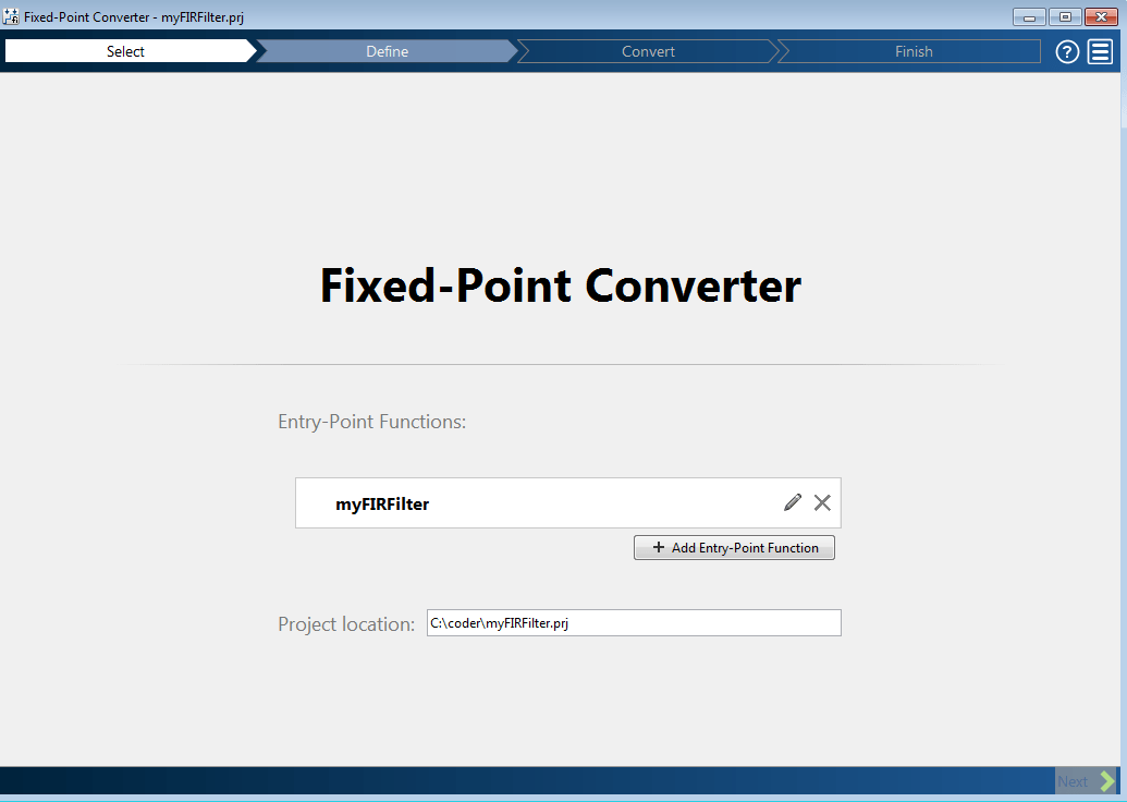 Нажмите кнопку Далее (Next), чтобы перейти к шагу Преобразовать в фиксированную точку (Convert to Fixed Point).