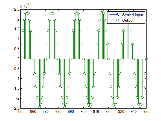 stem(n(yidx), [double(yout(yidx)'), double(ysc(yidx)')]);