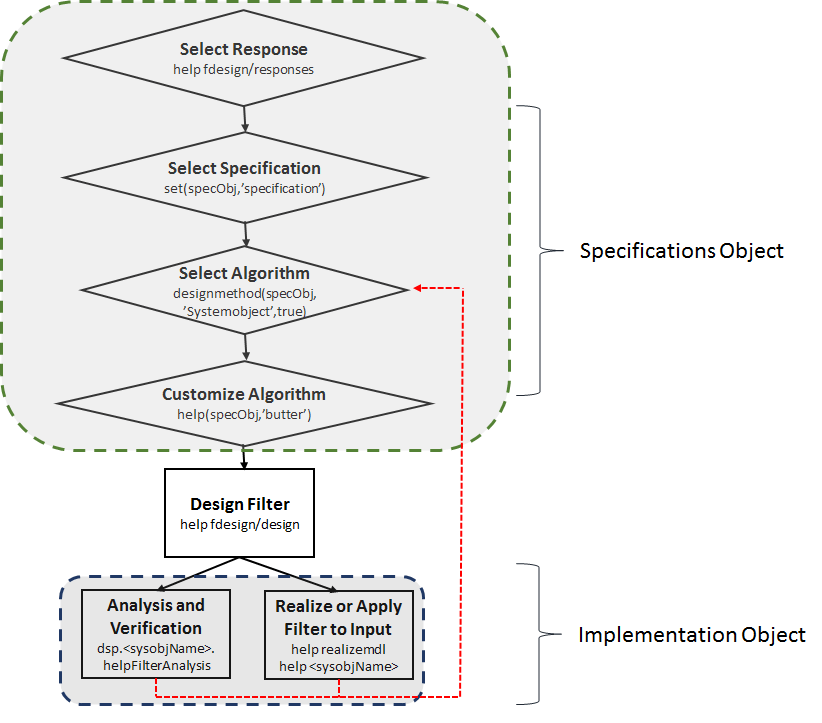 filt является объектом реализации фильтра. Эта концепция обсуждается далее на следующем этапе.Если этот шаг не выполняется явно, design автоматически выбирает оптимальный алгоритм для выбранного ответа и спецификации.