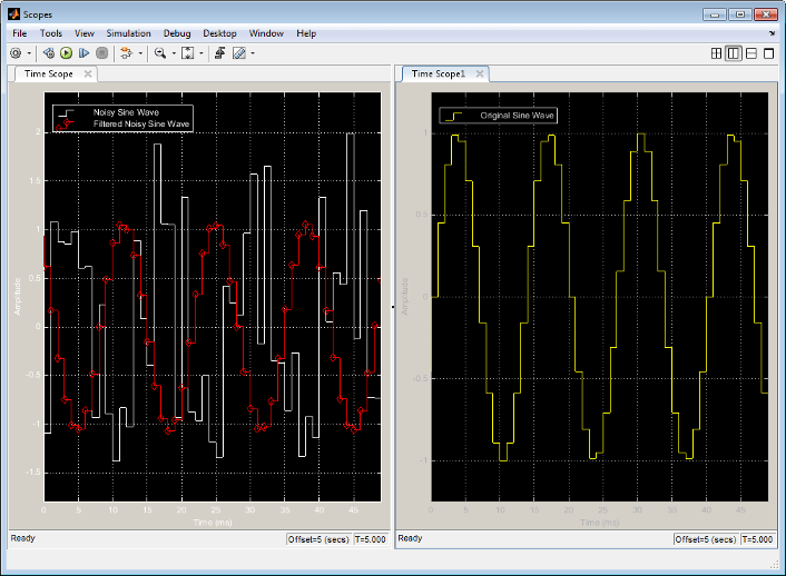 | Время Scope1 | Синусоидальная волна | Исходная синусоидальная волна |