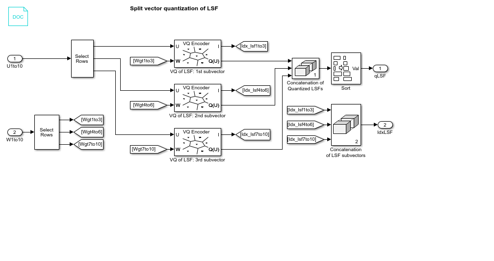 Дважды щелкните подсистему векторного квантования LSF, а затем дважды щелкните подсистему VQ разделения LSF.