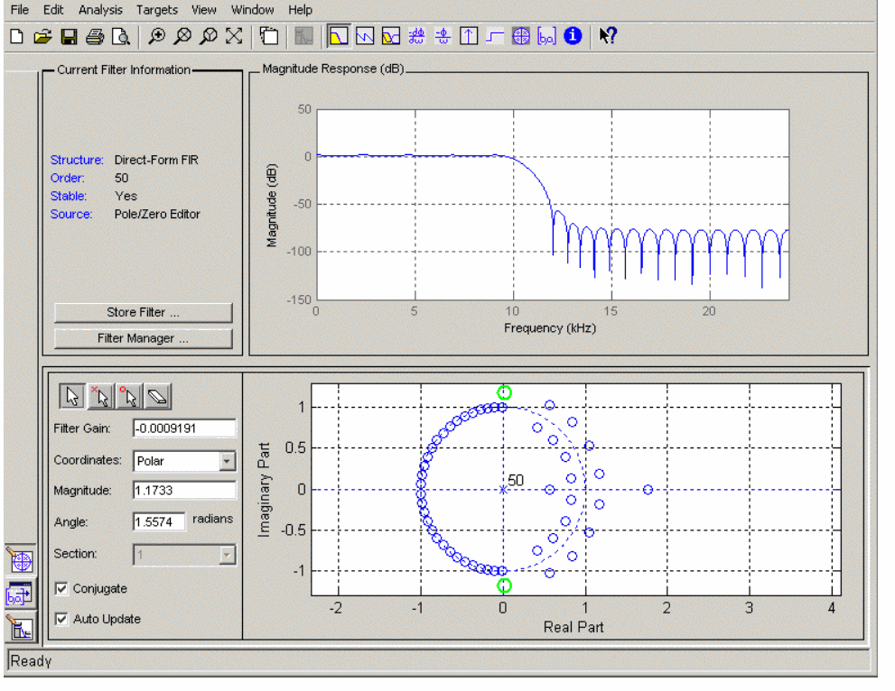 После задания конструкции фильтра нажмите кнопку «Создать фильтр» для вычисления коэффициентов фильтра.