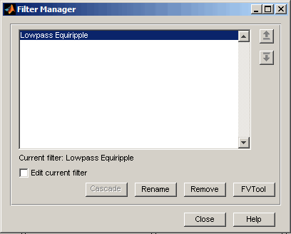 Фильтры, разработанные в текущем сеансе конструктора фильтров, можно хранить для каскадирования, экспорта в FVTool или для последующего отзыва в тех же или будущих сеансах конструктора фильтров.