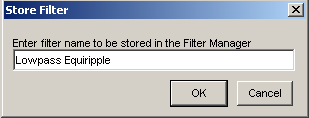 Сохранить фильтр (Store Filter) - отображает диалоговое окно Сохранить фильтр (Store Filter), в котором указывается имя фильтра, используемое при сохранении фильтра в Диспетчере фильтров (Filter Manager). Именем по умолчанию является тип фильтра.