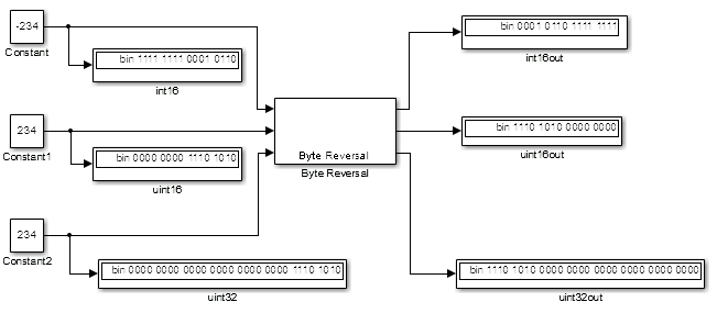 Блок реверсирования байтов изменяет порядок байтов в данных, вводимых в блок. Используйте этот блок, когда процесс взаимодействует между целевыми компьютерами, использующими разные эндианнессы, например, между процессорами Intel ®, которые являются малыми эндами, и другими процессорами, которые являются большими эндами. Техасские Instruments™ процессоры по умолчанию мало-endian.