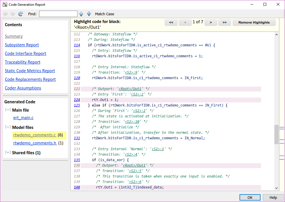 % Using block path rtwtrace('rtwdemo_comments/Out1') % Using Simulink identifier rtwtrace('rtwdemo_comments:33')