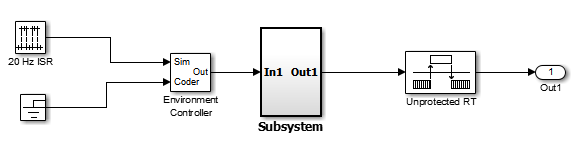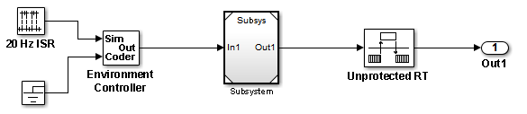 Можно использовать блок Спецификация асинхронной задачи (Asynchronous Task Specification), чтобы указать асинхронный ввод вызова функции для привязки модели. Однако необходимо преобразовать блоки асинхронного прерывания и вызова функции в подсистему, а затем преобразовать подсистему в ссылку на модель.