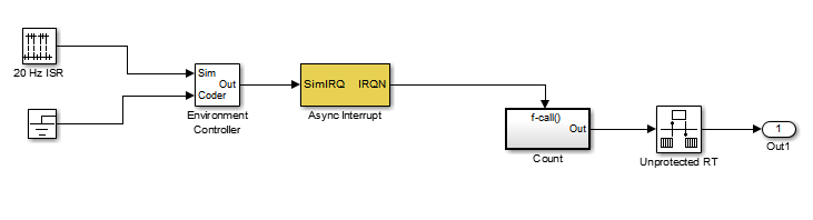 Преобразуйте блоки асинхронного прерывания и счетчика в подсистему. Выберите оба блока и щелкните правой кнопкой мыши «Количество». В меню выберите Подсистема и ссылка на модель > Создать подсистему из выбора.