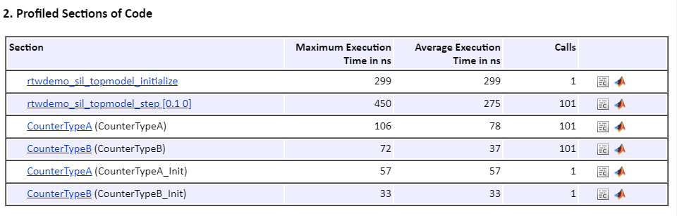 Для профилирования выполнения кода, чтобы уменьшить использование полосы пропускания канала связи во время моделирования программного обеспечения в цикле (SIL), моделирования процессора в цикле (PIL) или моделирования внешнего режима XCP, можно фиксировать и сохранять только эти показатели профилирования на целевом оборудовании: