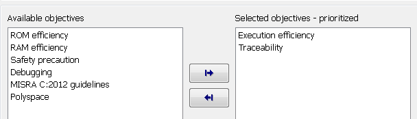 В разделе Доступные цели дважды щелкните Traceability. Traceability добавляется в раздел Выбранные цели - приоритет по Execution efficiency.