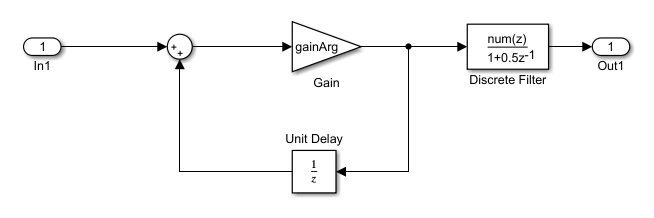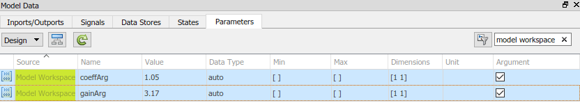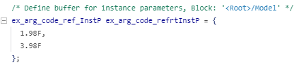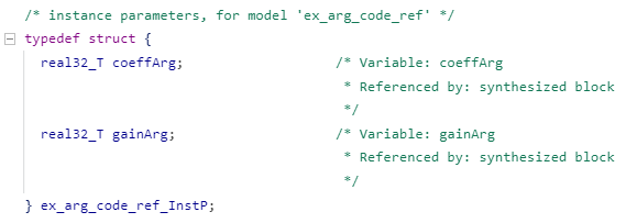 Чтобы понять поведение специфичных для экземпляра параметров в сгенерированном коде, рассмотрим эту ссылочную модель, которая определяет два аргумента параметра, gainArg и coeffArg.
