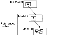 Например, рассмотрим верхнюю модель, имеющую блок модели A, который, в свою очередь, содержит блок модели B.