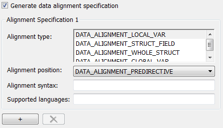 Для поддержки выравнивания данных в сгенерированном коде опишите возможности выравнивания данных и синтаксис компиляторов в регистрации библиотеки замены кода. Укажите одну или несколько спецификаций выравнивания для каждого компилятора в записи реестра библиотеки.