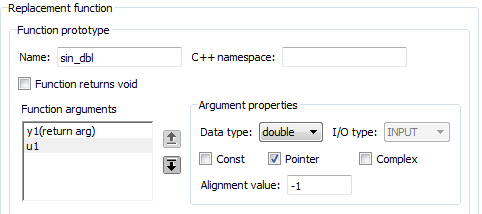 Укажите требования к выравниванию данных в записи замены кода. Укажите выравнивание отдельно для каждого аргумента функции реализации или совместно для всех аргументов функции. См. раздел Определение требований к выравниванию данных для аргументов функции.