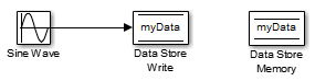 В следующей модели блок записи хранилища данных выполняет запись в память, объявленную блоком памяти хранилища данных myData: