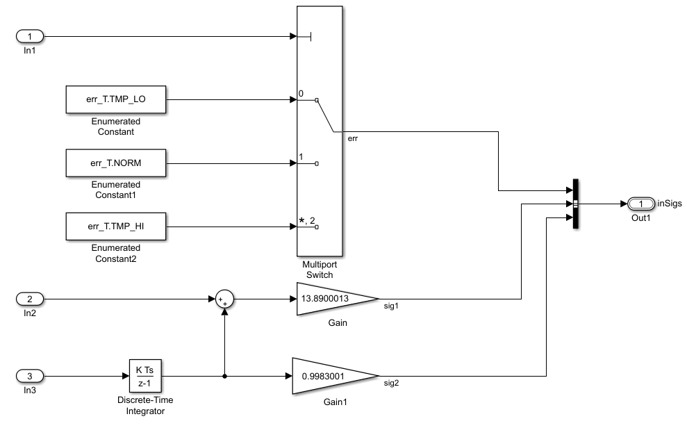inSigs.err = rtb_err; inSigs.sig1 = (rtU.In2 + rtDW.DiscreteTimeIntegrator_DSTATE) * calPrms.cal1; inSigs.sig2 = (real32_T)(calPrms.cal2 * rtDW.DiscreteTimeIntegrator_DSTATE);