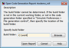 Введите полный путь к папке сборки для модели, ../ и нажмите Открыть отчет.model_target_rtw