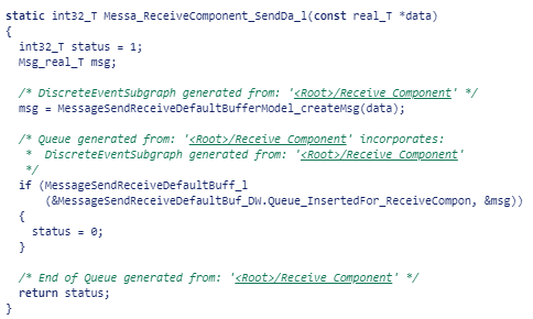 5. Для просмотра реализации сервисной функции для приема сообщений откройте файл модели C верхнего уровня, MessageSendReceiveDefaultBufferModel.c.