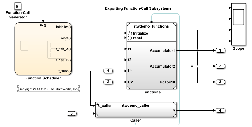 Несмотря на то, что функциональные блоки Simulink можно использовать в одной конструкции верхней модели, код функции является более многоразовым при создании его как автономных атомных компонентов. Это можно сделать путем проектирования функций в контексте моделей export-function.