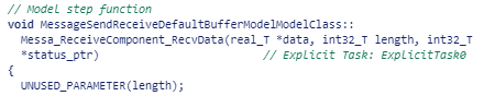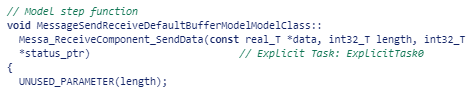Для просмотра реализации сервисной функции для получения сообщений откройте файл модели верхнего уровня C++, MessageSendReceiveDefaultBufferModel.cpp.
