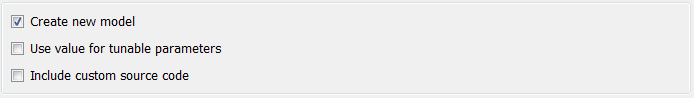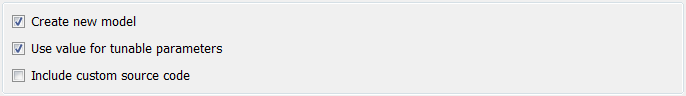 Генератор кода создает контрольную сумму для модели и использует контрольную сумму во время процесса сборки для повторного использования кода, ссылки на модель и функций внешнего режима.