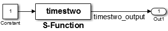 В этой простой модели используется timestwo S-функция и показывает MdlOutputs функция из сгенерированной , который содержит встроенный код S-функции.model.c