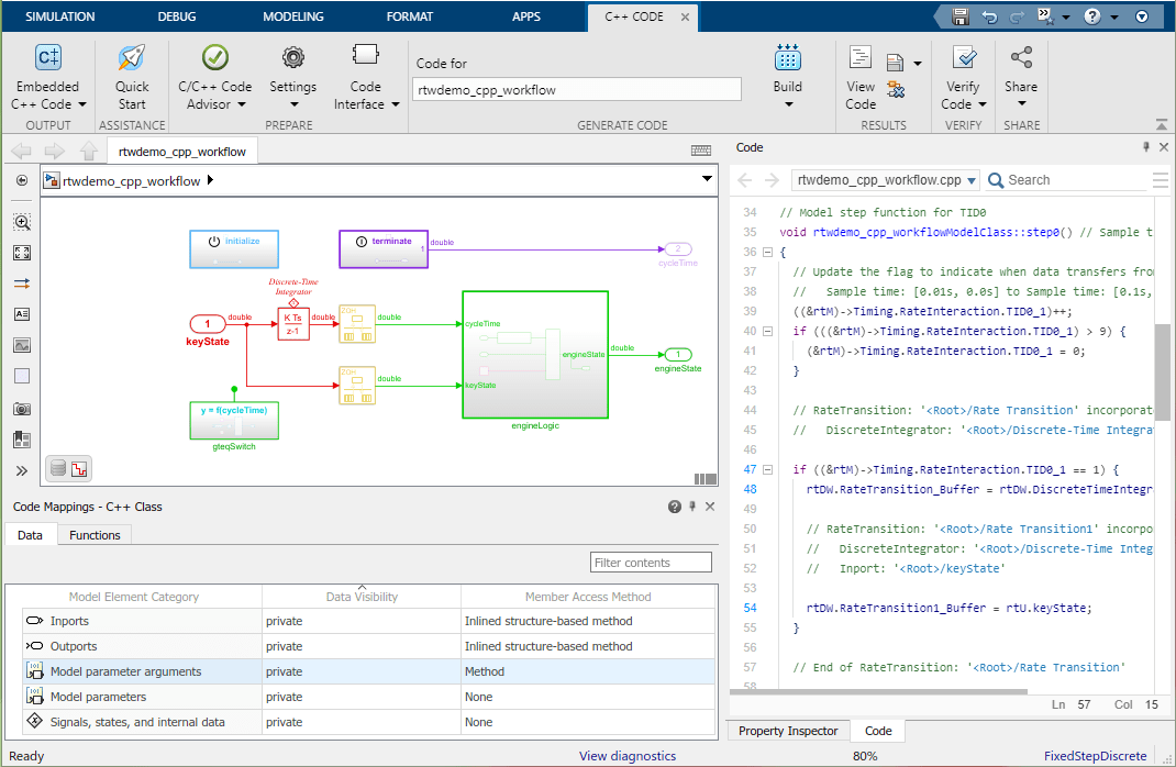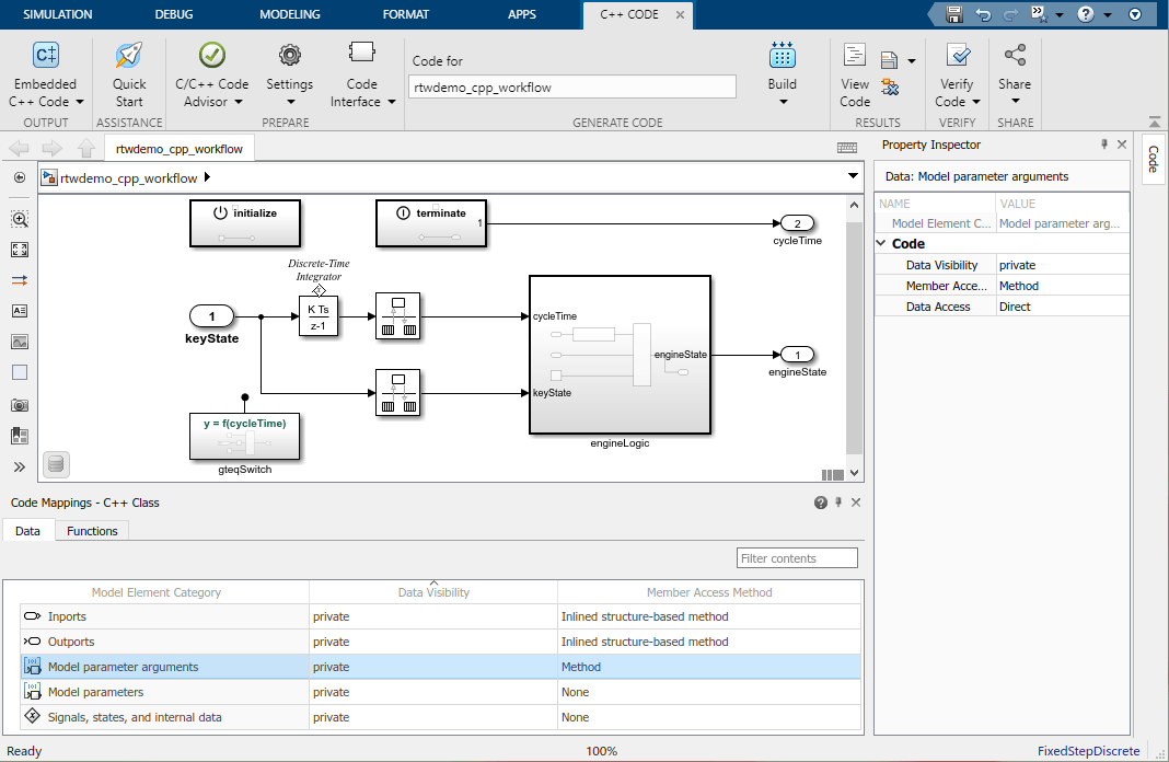 Чтобы упростить интеграцию кода C++, генерируемого приложениями, компонентами и подсистемами Simulink ®, с внешним кодом C или C++, настройте пользовательский интерфейс класса C++. При создании кода C++ из модели модель отображается как класс, элементы данных - как члены класса, а функции модели - как методы класса в сгенерированном коде. Настройка интерфейса класса C++ позволяет настроить следующие аспекты сгенерированного кода C++ :