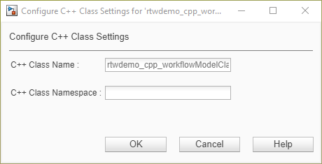 Настройте имя класса и пространство имен. При создании кода C++ из модели эта модель появляется как класс в созданном коде. Для упрощения интеграции и соответствия требованиям к коду и интерфейсу можно настроить созданное имя класса. Дополнительно можно задать область действия созданного кода и предотвратить конфликты символов в проекте, указав пространство имен для созданного класса. В моделируемых системах, построенных как иерархия модели, для каждой модели в иерархии можно указать разное пространство имен.