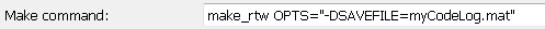 myCompilerOpts = {' -DSAVEFILE=myCodeLog.mat '};