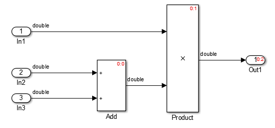 Чтобы переупорядочить коммутируемые операнды, создайте эту модель и присвойте ей имя operand_order. Выходной сигнал является результатом умножения сигнала из блока Inport In1 по сумме сигналов от блоков Inport In2 и In3.