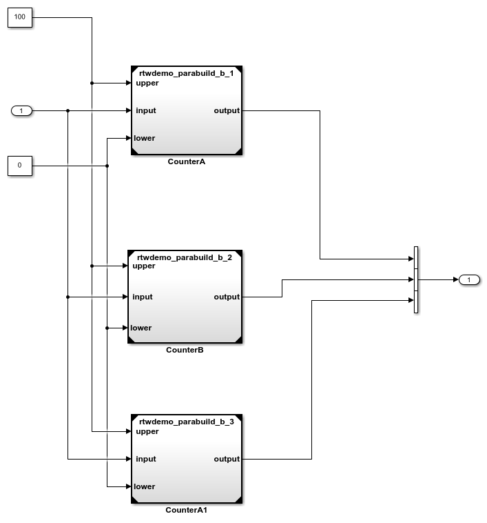 В этом примере показано, как можно контролировать процесс построения иерархии модели. В иерархии, rtwdemo_parabuild_a_1 ссылки rtwdemo_parabuild_b_1, rtwdemo_parabuild_b_2, и rtwdemo_parabuild_b_3.