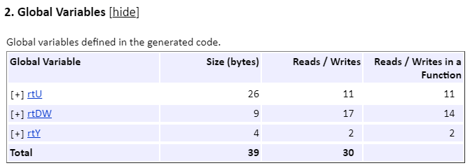 Создание отчета по метрикам кода и статического кода для rtwdemo_roll. Эта модель сконфигурирована для генерации отчета о создании кода и автоматического открытия отчета. Дополнительные сведения см. в разделе Создание отчета о метриках статического кода для модели Simulink.