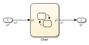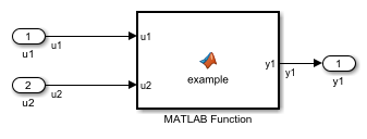 Подключите блоки Inport и Outport к функциональному блоку MATLAB. См. раздел Настройка портов ввода, портов вывода и произвольных сигналов.