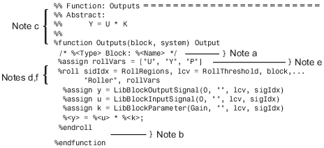 Output функция в gain.tlc%roll sigIdx = RollRegions, lcv = RollThreshold, ...