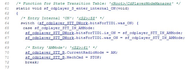 Щелкните значок sf_cdplayer_STT.c гиперссылка в отчете.