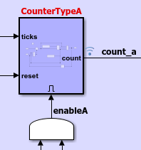 Откройте окно rtwdemo_sil_topmodel модель, которая имеет две подсистемы CounterTypeA и CounterTypeB. В командной строке введите rtwdemo_sil_topmodel.