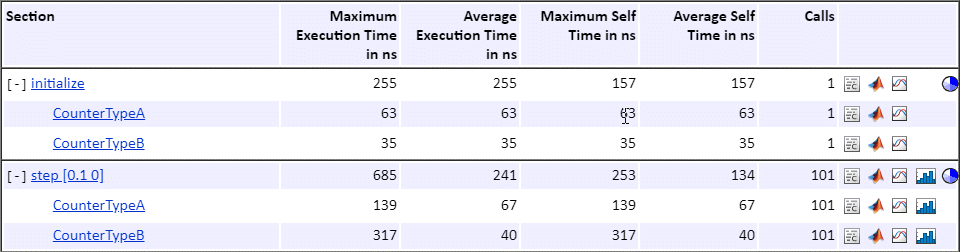 report(executionProfile,... 'Units', 'Seconds', ... 'ScaleFactor', '1e-06', ... 'NumericFormat', '%0.3f')