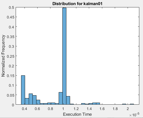 executionProfile=getCoderExecutionProfile('kalman01') section=executionProfile.Sections(2); data=section.ExecutionTimeInSeconds; histogram(data, 30,'Normalization','probability');