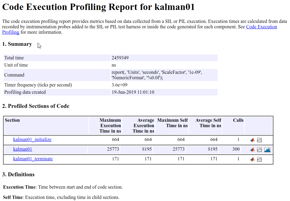 Execution profiling report: report(getCoderExecutionProfile('kalman01'))Щелкните новую ссылку.
