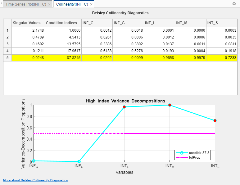 Повторите шаги 4 и 5, но скорректируйте q и q12, чтобы охватить девять перестановок q ∈ {0,1,2} и q12 ∈ {0,1,2}. Econometric Modeler различает последующие модели того же типа, добавляя последовательные цифры к концу имени переменной.