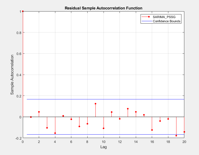 Выберите подмножество моделей с желательными остаточными свойствами и минимальной статистикой подгонки (см. Поиск модели с наилучшей подгонкой в образце).