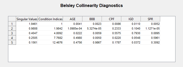 Табличные результаты отображаются в документе Collinearity (AGE).