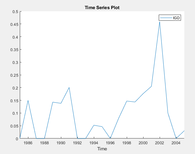 На панели «Временные ряды» дважды щелкните IGD. Значение IGD появляется на панели «Предварительный просмотр» и график временных рядов для IGD появляется в окне графика временных рядов (IGD).